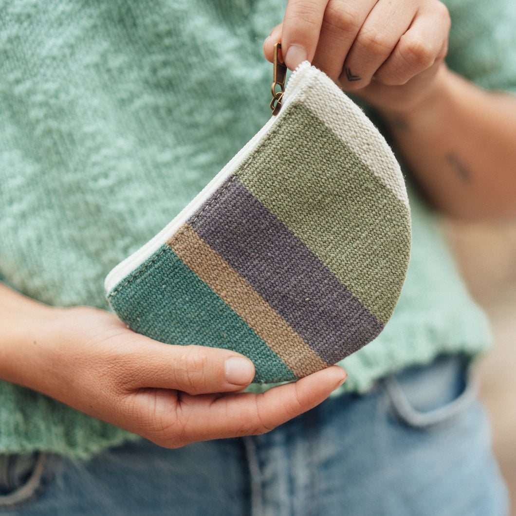 This rounded pouch provides organization and peach of mind, keeping the small important things accessible. Cards, cash, chapstick, all fit in this adorable zippered pouch. Organic sheep wool with unbleached cotton lining provide a durability for years to come.