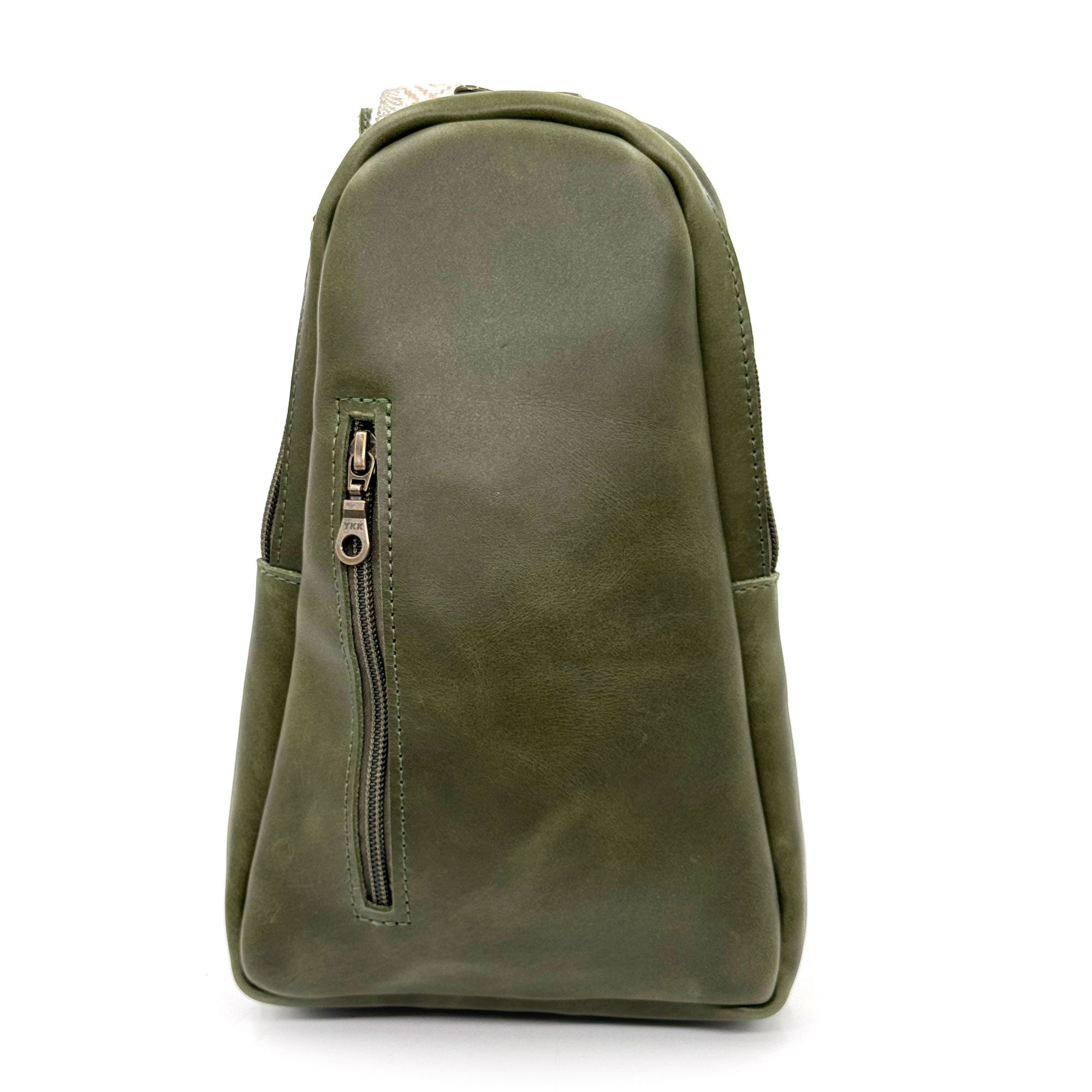 Features: Crossbody backpack, wool strap, zippered exterior pocket, interior open pocket